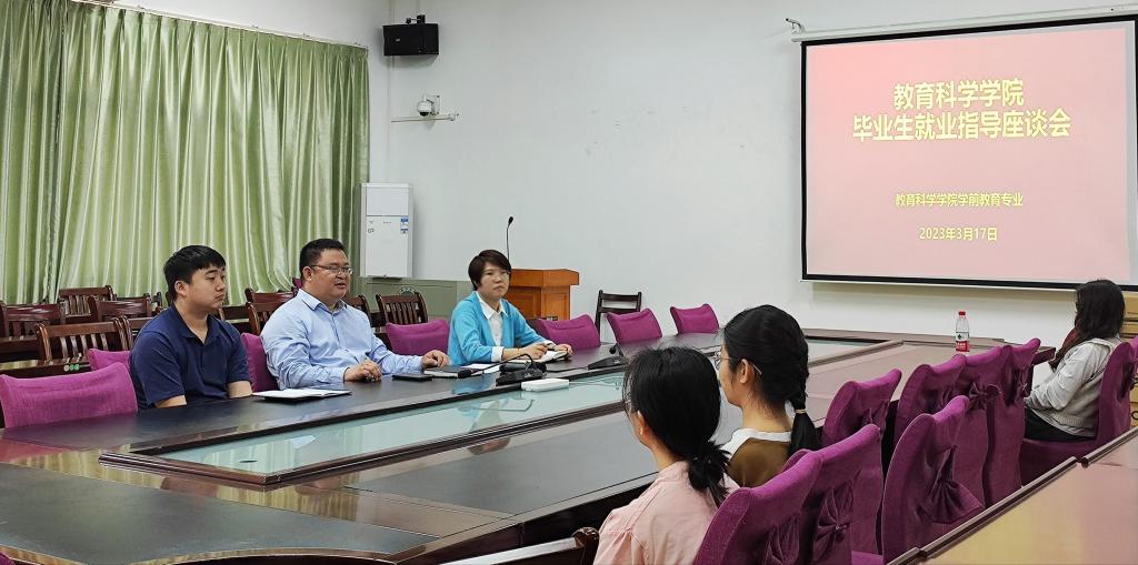 为扎实推进我院2023届毕业生就业工作,全面动员毕业生就业,调动毕业生就业主动性和积极性,3月17日下午,我院领导干部深入2023届毕业生,于我校东校区明德楼学院会议室召开毕业生就业指导座谈会,我院院长陈庆文,党委副书记李尚芳,辅导员李泽荣,学前教育专业2023届毕业生参加座谈会,本次座谈会由我院党委副书记李尚芳主持。