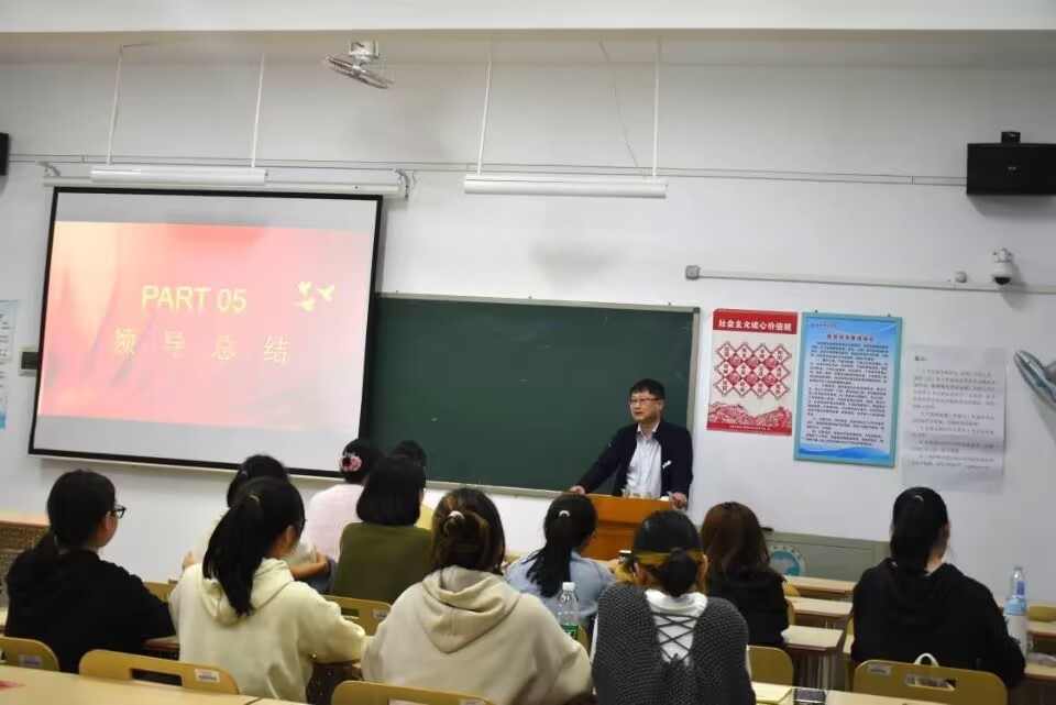 本次班会以“青春践行二十大”为主题。会上,各班班主任围绕党的二十大精神,阐述抗疫三年的成果,引导学生科学认识疫情,坚决拥护党中央决策部署。高年级优秀学生代表分别从学习、生活、考研等方面分享成长故事,用实际行动践行二十大精神。参会学生围绕“爱国、团结、奋斗、科学、互助”五个关键词展开深入交流讨论。