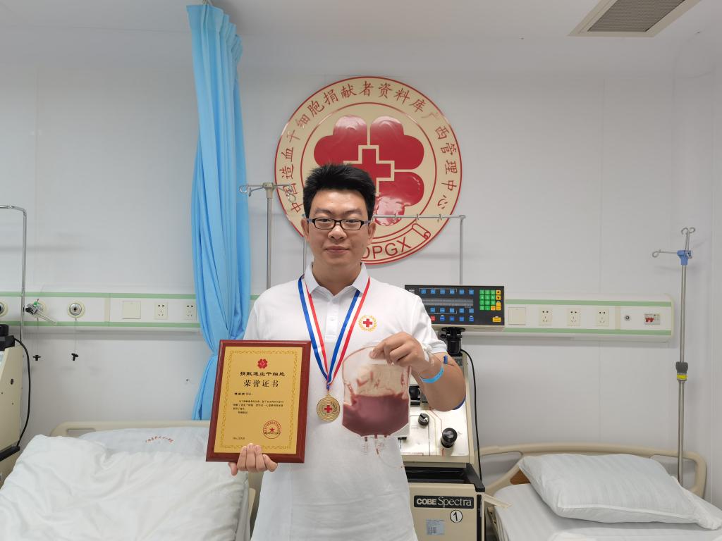 “用爱心让生命延续。”用爱心富饶的部分,抵挡迎面而来的风,用善意传递的本质,守护健康生长的路。近日,太阳成集团tyc122cc入口教育科学学院2017级毕业生谭堃灏成功捐献造血干细胞的事迹在该校师生中产生广泛影响,谭堃灏成功捐献造血干细胞混悬液约200毫升,成为中华骨髓库第15315例,广西第541例,梧州市第21例非亲缘造血干细胞捐献者。