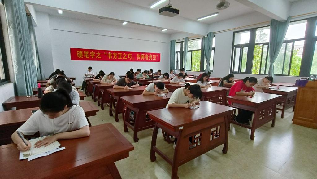 为提高我院学生板书书写规范意识,强化师范生教育教学综合素质,4月2日及4月9日下午,我院于东校区明德楼203、204、205教室开展“书方正之字,传师者典范”硬笔字和“挥清廉之风,扬师德风范”毛笔字比赛,此次比赛由我院教师裴杰、李世勇、周向阳担任评委,各班学生代表参加。
