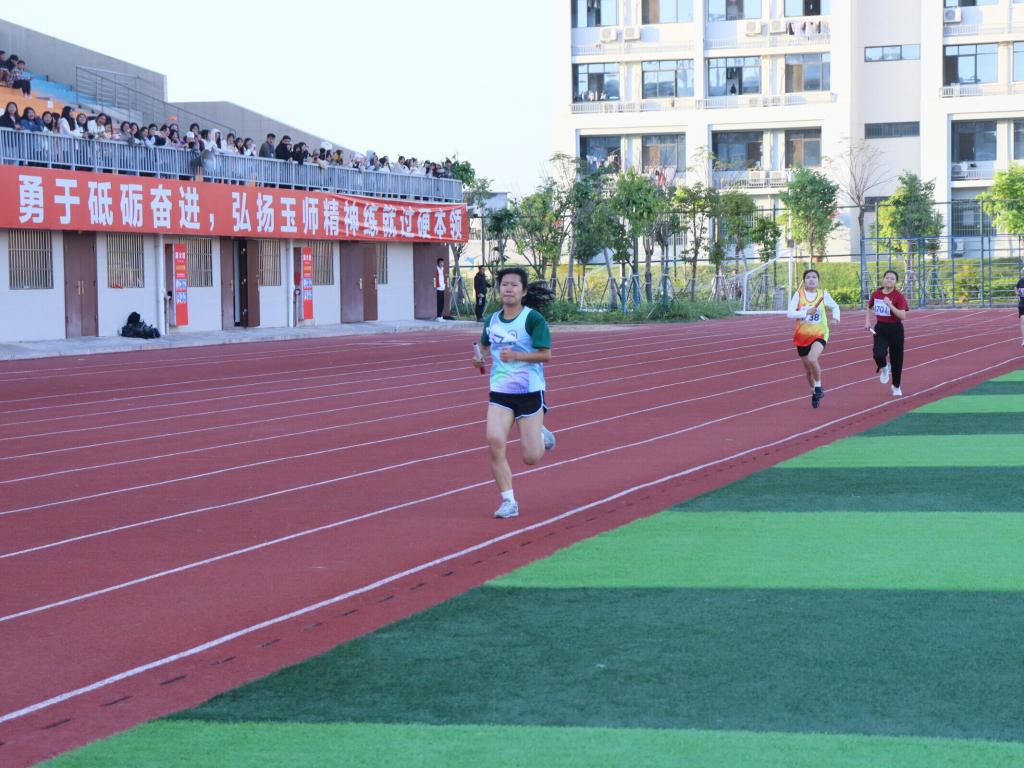 我校第二十四届田径运动会之女子甲组 4 x400 米接力决赛火热开赛