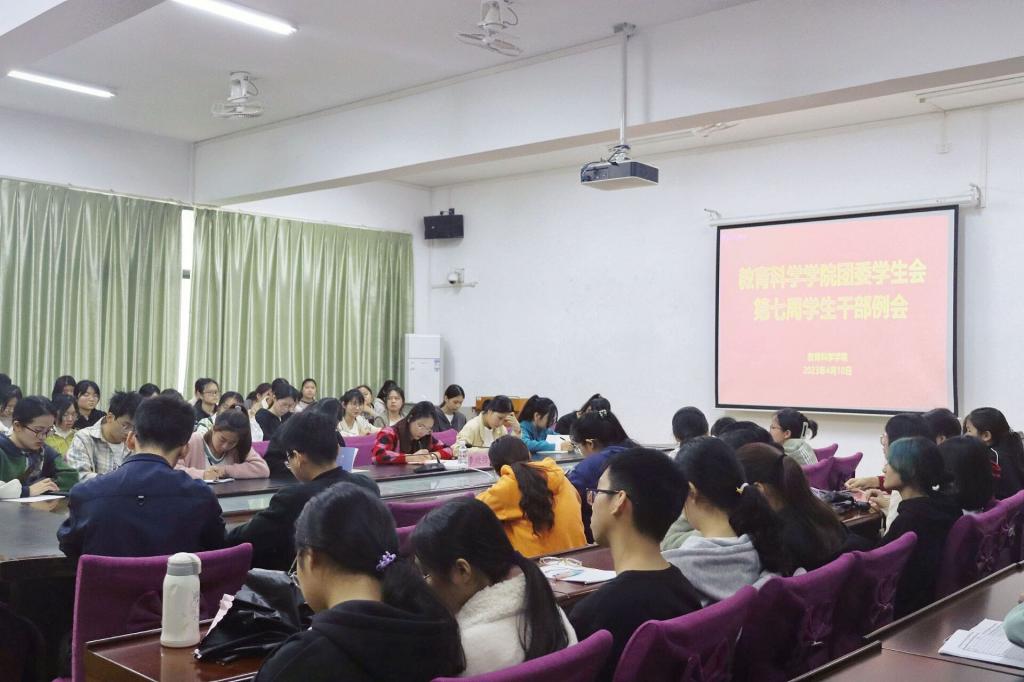 4月10日中午,我院于我校东校区明德楼学院会议室召开团委学生会第七周学生干部例会,本次例会由我院团委书记李欣怡主讲,我院团委学生会主席团成员,全体学生干部到场参加。