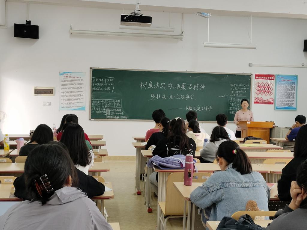 为深入学习贯彻党的二十大精神,进一步深化廉洁教育,加强我院学生三月三假期安全意识,4月10日至4月20日,我院各班于我校东校区明德楼教室召开“树廉洁风尚,扬廉洁精神”暨三月三假期安全教育主题班会。本次主题班会由我院各班班主任主讲,各班学生到场参加。