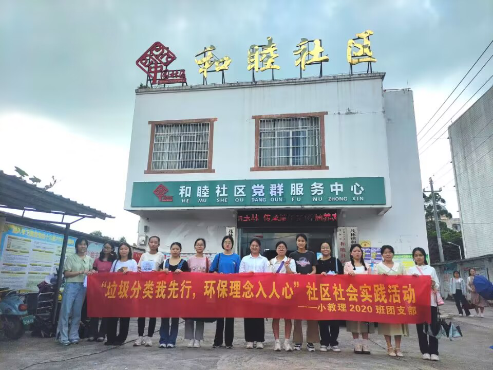 为丰富社区周围居民垃圾分类相关知识,使其进一步认识垃圾分类的意义和必要性,增强环保意识,627日,我院小学教育(数学与英语方向)2020班于玉林市玉州区和睦社区开展以“垃圾分类我先行,环保理念入人心”为主题社区服务实践活动,本次活动由该班班长雷华宇组织带队,该班22名学生参加。
