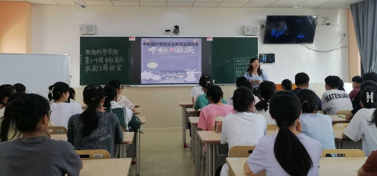 会上,各班班主任首先向全体学生详细介绍中秋节和国庆节来源及节日庆祝方式。随后,各班班主任强调,假期期间要遵纪守法,遵守社会道德规范,自觉维护学校和大学生形象,不断提高法制观念和安全防范意识,不信谣、不传谣;加强流行病预防意识,养成良好生活卫生习惯,强化健康意识,加强身体锻炼;防范校园不良网络借贷和电信诈骗,了解校园不良网络借贷风险和危害,树立正确消费观念,提升对不良网络借贷和电信诈骗的辨别和风险防范能力,切实增强金融安全防范意识;假期期间外出乘坐合法合规车辆,遵守交通规则,注意道路交通安全,以免发生交通事故。