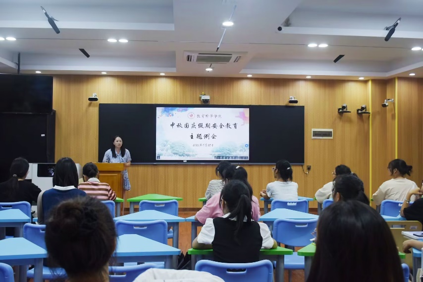 为进一步提高学生假期安全意识,推进我院安全教育工作,9月25日上午,我院于明德楼402教室召开中秋国庆假期安全教育主题例会。本次会议由我院辅导员李泽荣、唐霞主持,我院各班纪律委员参加。