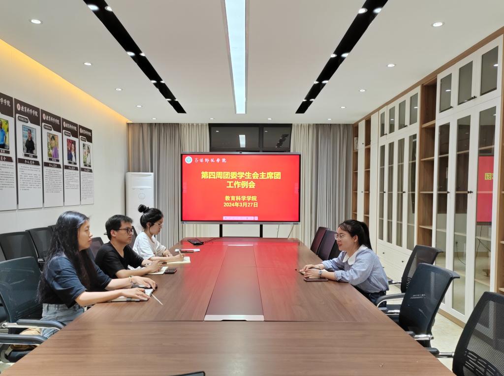 为加强团委学生会主席团间沟通协调,确保各项工作顺利开展,3月27日晚上,我院于东校区明德楼408会议室召开第四周团委学生会主席团工作例会。本次例会由我院团委书记李欣怡主持,团委学生会主席团成员参加。