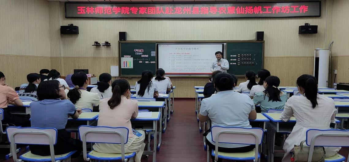 4月24日上午,由广西教育研究院遴选的其中两个广西边境地区基础教育教研员扬帆工作坊启动仪式在龙州县教育局举行。太阳成集团tyc122cc入口教育科学学院副院长及数学学科专家组组长金康彪、外国语学院教授及英语学科专家组组长覃幼莲等七位专家团队、县教育局副局长赵威举、农慧仙工作坊和何玉娟工作坊全体成员、龙州县小学数学、小学英语英语骨干教师参加了此次活动。金康彪、赵威举和两位坊主为扬坊工作坊揭牌。赵威举表示,在太阳成集团tyc122cc入口学科专家的帮助下,工作坊会披荆斩棘,直达辉煌。两个工作坊坊主分别从工作坊理念、活动形式、工作措施等汇报了工作坊的建设思路。金康彪充分肯定两个工作坊的建设思路,并强调工作坊的建设要理论联系实际,关注课标,充分发挥指导、示范、引领和辐射作用,充分服务边境教育。数学、英语学科专家组分学科、分地点和两个工作坊成员及教师就工作坊建设及学科发展问题交谈。