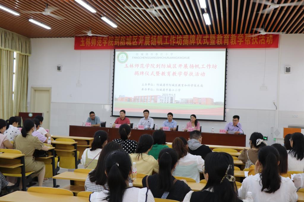 为贯彻落实广西壮族自治区人民政府办公厅《关于印发广西边境地区教育提升工程实施方案的通知》(桂政办发〔2022〕22号)精神,进一步提升广西边境地区教育教学质量,高效推进边境地区教育结对帮扶工作,我校赴防城区、东兴市开展扬帆工作坊揭牌仪式暨教育教学帮扶活动。